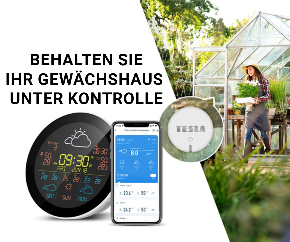 Nutzen Sie den externen Sensor der Wetterstation TESLA Device MS360 voll aus und beschränken Sie sich nicht nur auf den Außenbereich Ihres Hauses. Der Sensor eignet sich auch zur Überwachung des Mikroklimas in Ihrem Gewächshaus. Sie erhalten einen Überblick über Temperatur und Luftfeuchtigkeit und sorgen so für ideale Bedingungen für den Pflanzenanbau. Der Sensor eignet sich ebenfalls für den Weinkeller, wo er Ihnen hilft, optimale Luftfeuchtigkeit und Temperatur für die Lagerung von Wein aufrechtzuerhalten. Dank kabelloser Verbindung und Benachrichtigungen bei niedrigem Batteriestand behalten Sie stets den Überblick über seinen Zustand, egal wo Sie ihn platzieren.