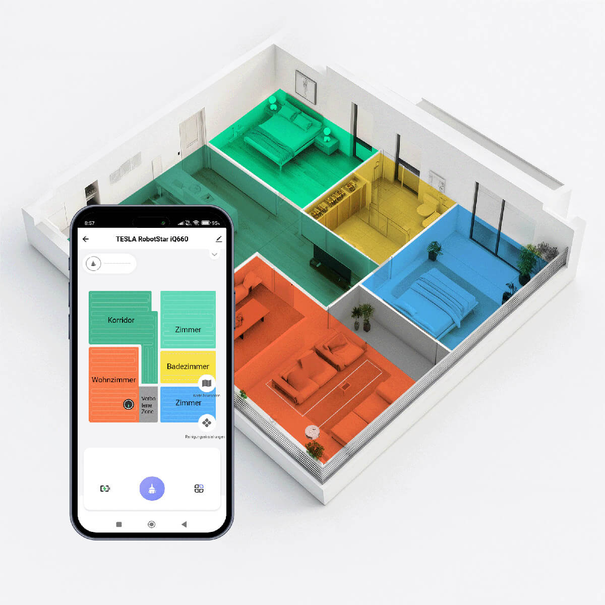 Der TESLA RoboStar iQ660 ist perfekt auf deutsche Kunden zugeschnitten. Eine angenehme deutsche Sprachausgabe informiert über den aktuellen Status und die Bewegung des Staubsaugers, die mithilfe einer intelligenten Diagnose überwacht werden. Die TESLA Smart App für Smartphones auf Deutsch ist für Android und iOS verfügbar.