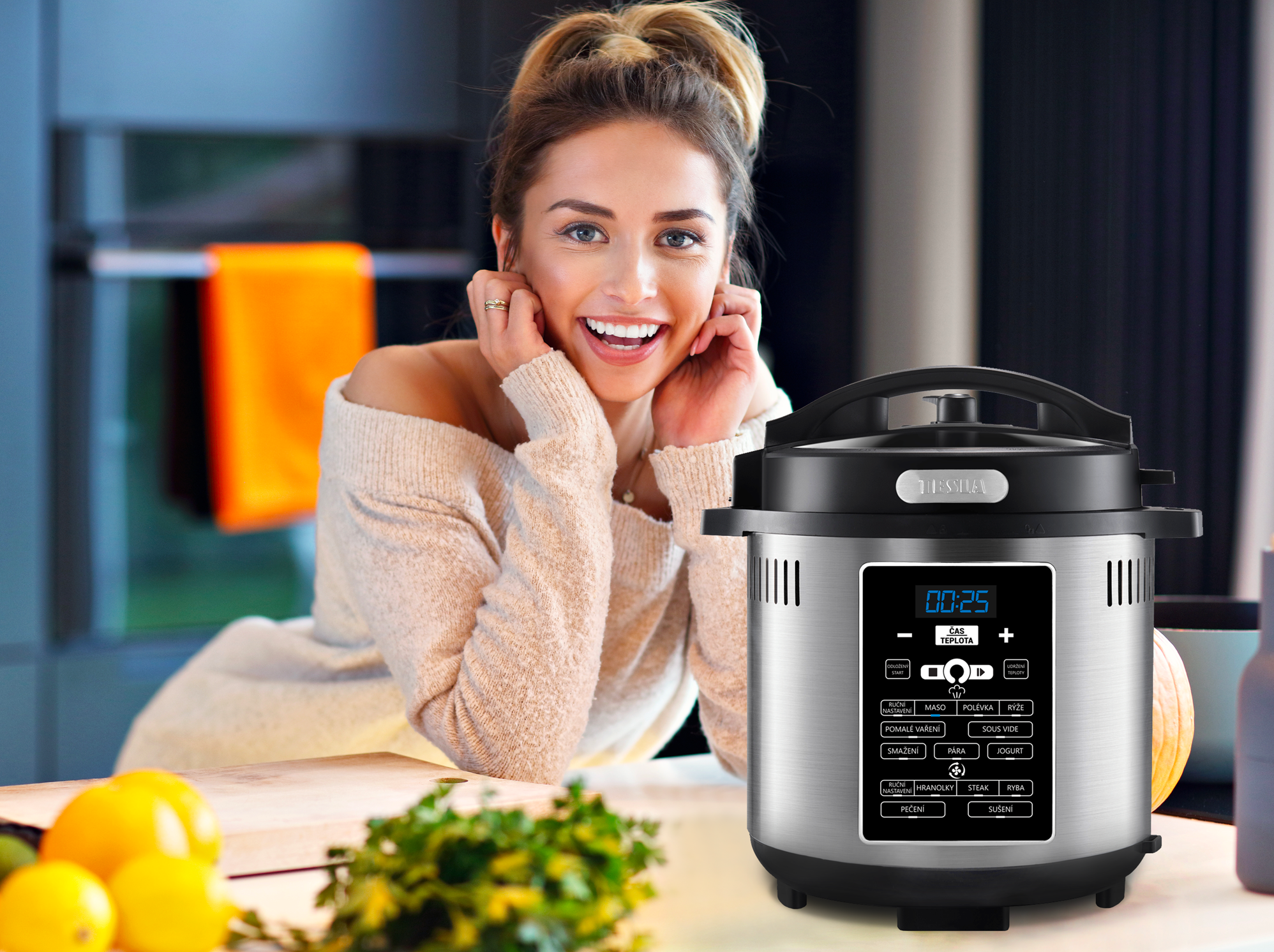 The TESLA EliteCook K80 Deluxe is an electric pressure cooker designed to be safe, convenient and reliable. It is therefore very easy to operate and can be handled by anyone. The “delayed start” (timer) function allows you to delay the start time of cooking by up to 24 hours, so cooking starts at a time that suits you.