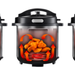It also cooks both main dish and side dish at the same time. So you can enjoy classic broth, stew, beef/pork roast, pasta, meatballs, cabbage, parmesan, potatoes, rice, legumes and more, just like in a classic pressure cooker. Plus, you also get the option to bake crispy chicken, fries, steak or fish with hot air.