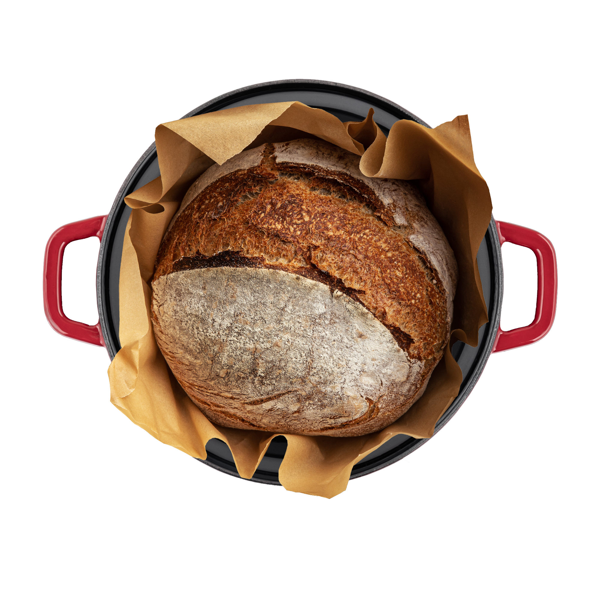 Emaliowany żeliwny garnek to idealne narzędzie do pieczenia domowego chleba w piekarniku. Dzięki solidnej konstrukcji i możliwości utrzymywania stabilnej temperatury, garnek pozwala na doskonale upieczone pieczywo z chrupiącą skórką i miękkim środkiem. Twoja kuchnia nie tylko będzie pachniała świeżo upieczonym chlebem, ale także będziesz mógł cieszyć się radością domowego wypieku. Garnka można używać w piekarniku do 250°C.