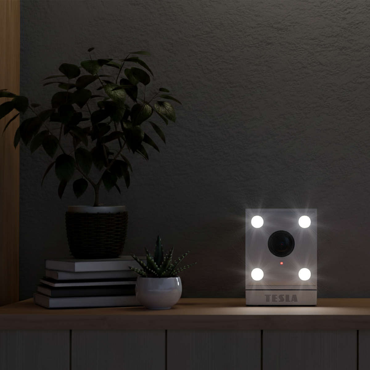 Podczerwone nocne widzenie zapewnia czysty czarno-biały obraz. Jeśli chcesz widzieć w naturalnych kolorach po zmroku, cztery mocne diody LED oświetlą otoczenie, dzięki czemu obraz pozostaje jasny i kolorowy nawet przy słabym świetle. Kamera rozpoznaje osoby i ruch do około 10 metrów – zobaczysz śpiące dziecko, zwierzę domowe lub potencjalnego intruza.