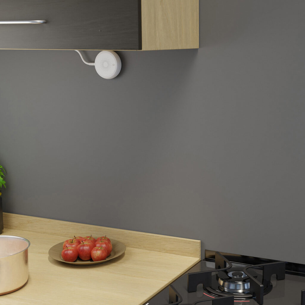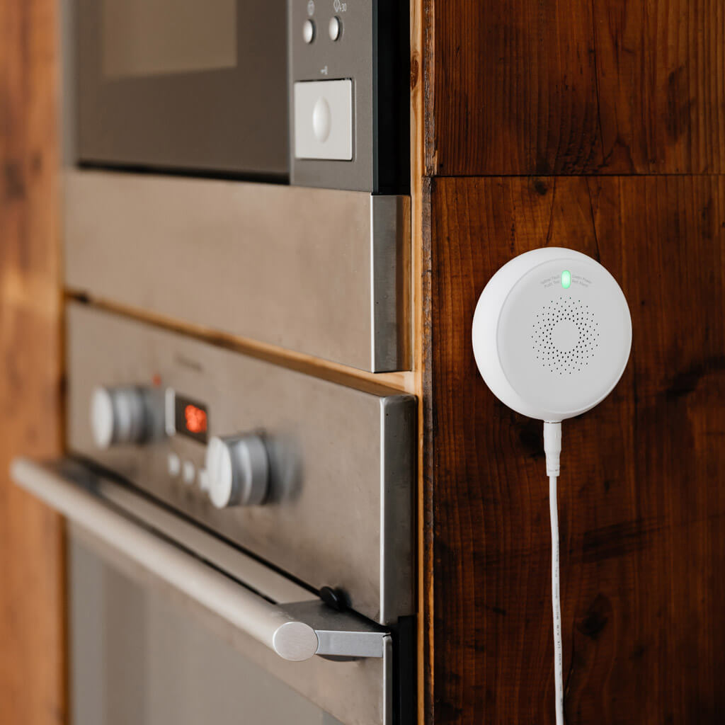 W przypadku wykrycia wycieku czujnik ostrzega na kilka sposobów. Na urządzeniu uruchamia się alarm dźwiękowy i świetlny, a jednocześnie otrzymujesz powiadomienie na telefon komórkowy. Inteligentna automatyzacja oferuje dodatkowe możliwości.